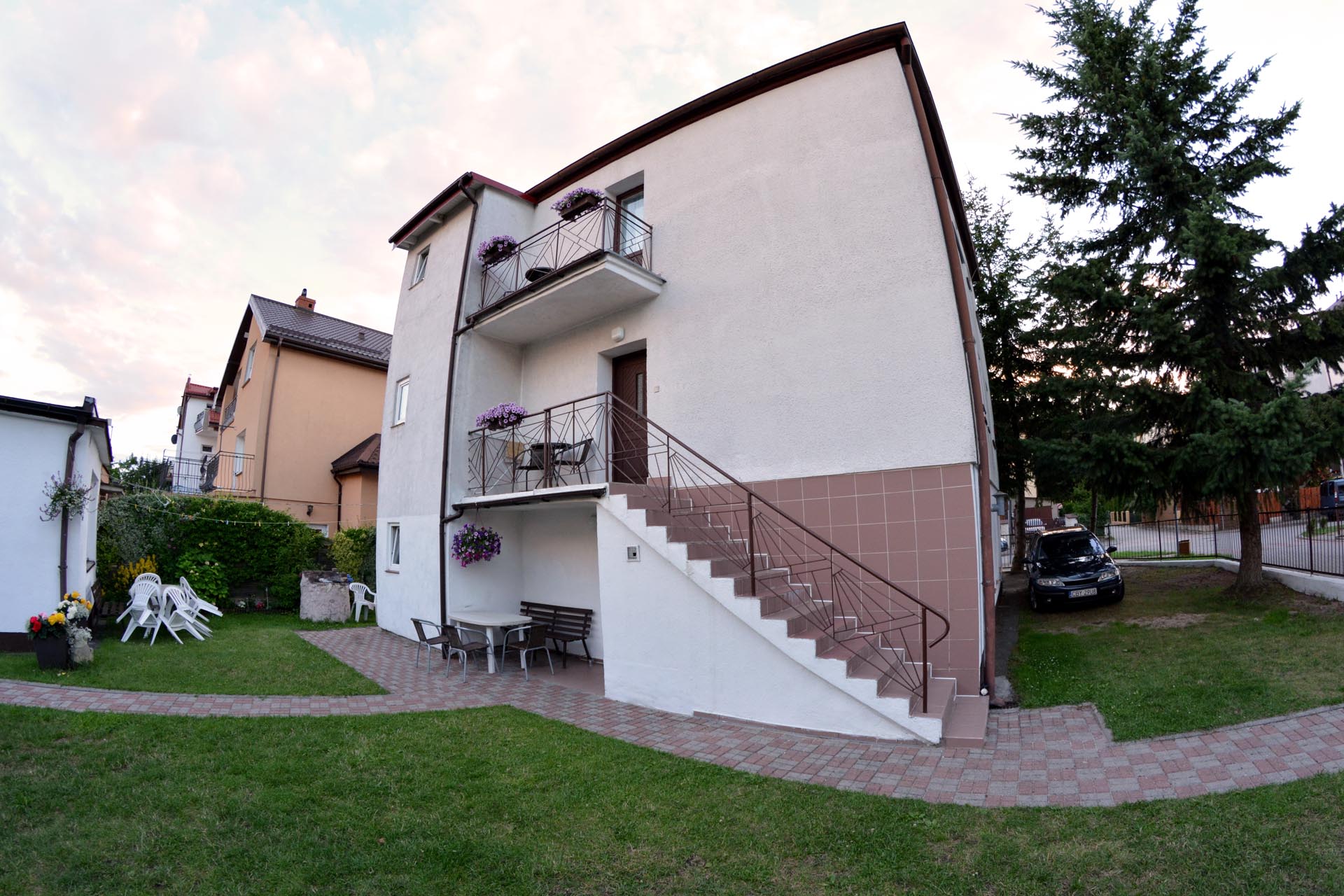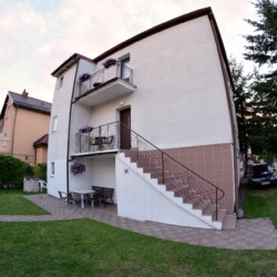 Dwupiętrowy pensjonat znajduje się w zacisznej części Darłówka w odległości ok. 300 m. od plaży.